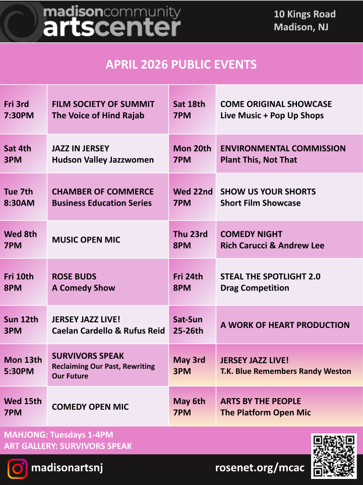Wednesday April 8 - Music Open Mic @The Madison Community Arts Center. Sign up - 7pm / 7:30-10pm mic. Everyone gets 2 songs (10mins max). First come, first serve. We have a Steinway Piano, cajon drum, bass & guitar amps you can use. Last month was another PACKED mic; the list filled up quickly and there was another waitlist! Such a fun night. Please arrive at 6:45/7pm if you want to get a spot.