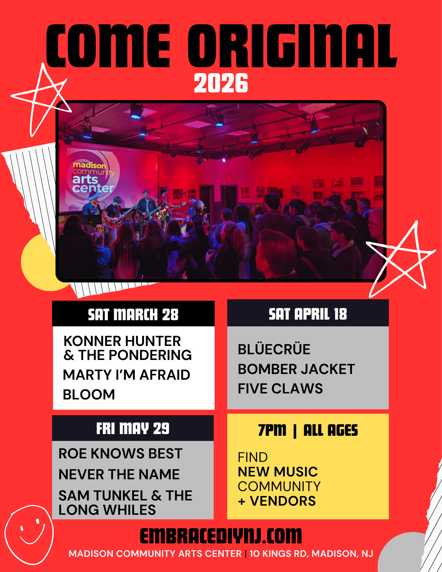 Join us on Saturday April 18, 2026 at 7pm at The Madison Community Arts Center for a lineup of local Alt Rock/Jazzy/Funky bands!